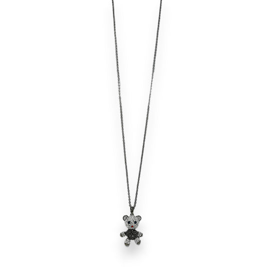 Ce collier fantaisie argenté présente un adorable pendentif nounours orné de strass scintillants dans des nuances gris foncé et argent. Avec sa chaîne de 43cm et son médaillon de 3,5cm, ce bijou Dolvika allie charme enfantin et sophistication moderne. La finition métallique premium et les détails articulés créent un accessoire...